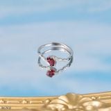 Chiếc Nhẫn được chế tác từ bạc cao cấp, kết hợp cùng viên Garnet đỏ đầy mê hoặc. Thiết kế ôm trọn lấy viên đá, điểm xuyết bằng những chi tiết nhỏ tinh tế, mang lại vẻ ngoài vừa thanh lịch vừa nổi bật.